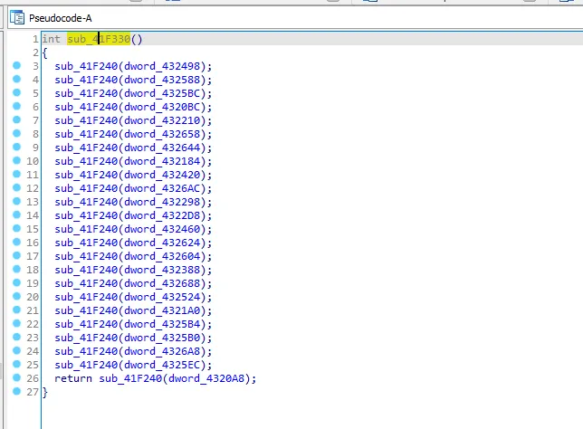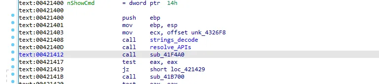 I will call the function which we are in to resolve_APIs and go to the next call sub_41F4A0