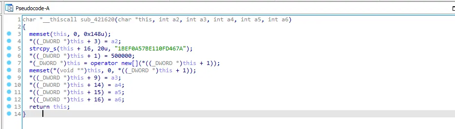 We see a string which looks like a key, this function is returning to this which means that the function initializing the value of the structure, so I’ll call it “init_this_struct”.