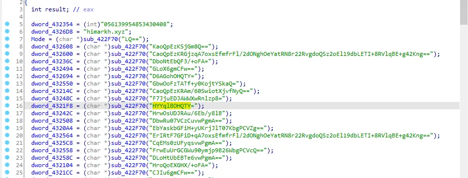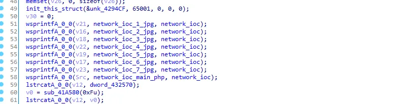 Everything is clear now, %s will be replaced with the network ioc “himarkh.xyz” and become “himarkh.xyz/1.jpg”, let’s rename the dword_432244 to “network_ioc_1_jpg” and do that to the next dwords.