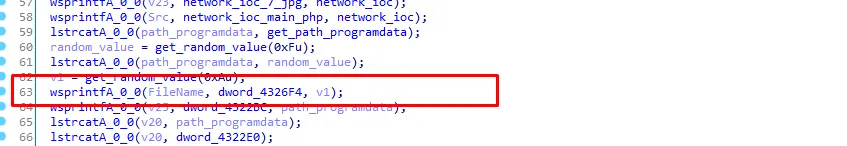 next we see that random value is being concatenated to the path of program data, this means that there is path is being generated.