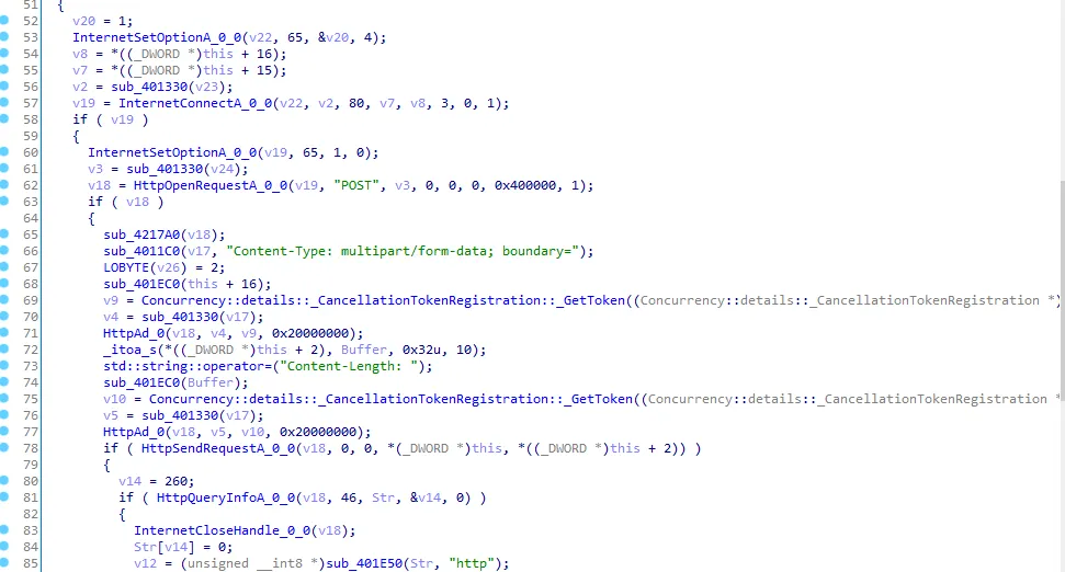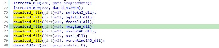 After seeing the xrefs of the dwords and renaming it we can say that the malware is downloading these DLLs then request pages containing the configuration values for which data to collect. and these dlls are downloaded in C:\ProgramData\