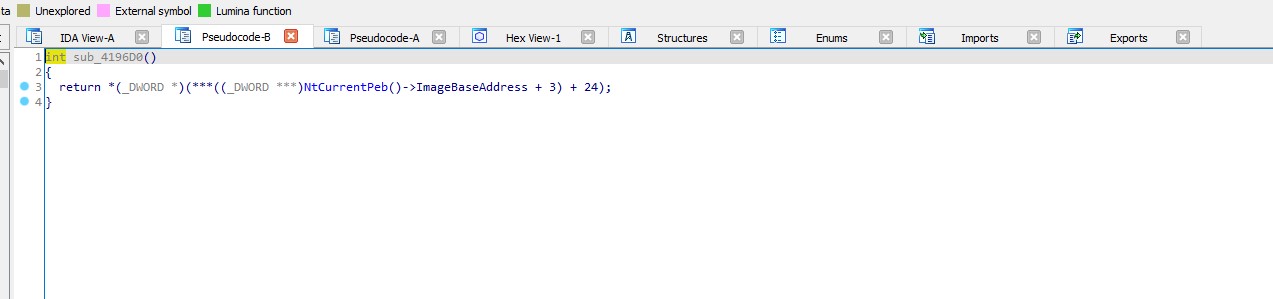 So let’s rename dword_432898 to LoadLibraryA_1 and dword_43280C to GetProcAddress_1, now everything is clear GetProcAddress_1 is used to resolve all the other API calls. Let’s rename every dynamic function to make our analysis easy.