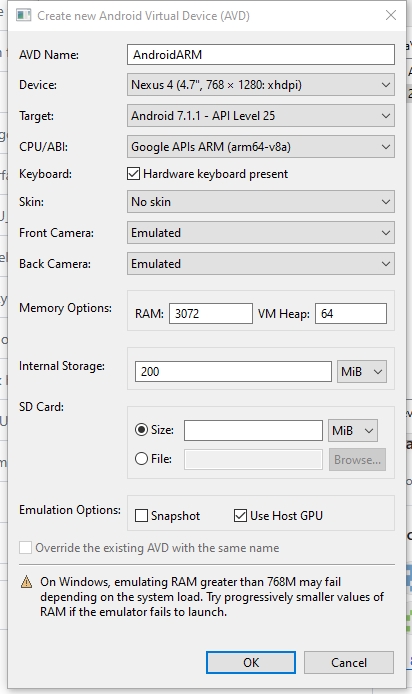 In my case if I choosed a device rather than Nexus 4 or WXGA Tablet the vm won’t work. (I really don’t know why)